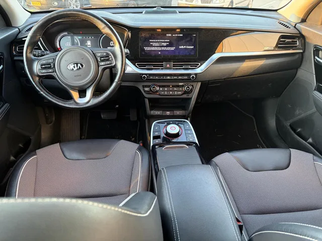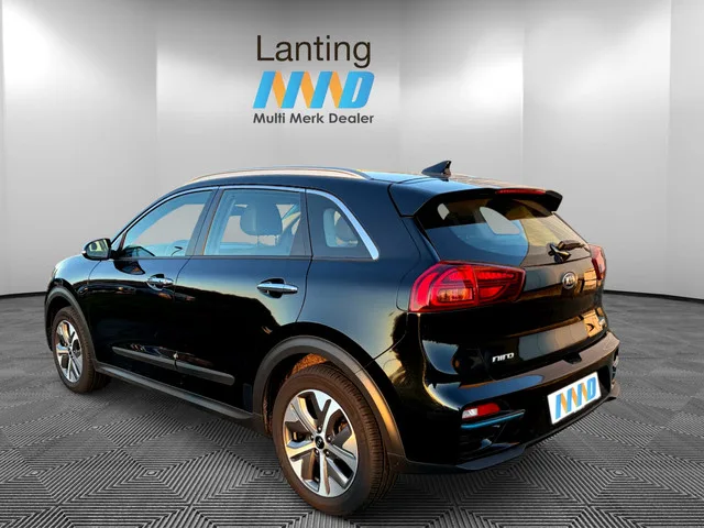 Long range elektrische Kia Niro. Lease zakelijk of privé met inruil eigen auto mogelijk. Kia e-Niro DynamicLine 64 kWh. Kenteken: J-279-ZP; Merk: Kia; Model: e-Niro; APK tot: 12-11-2026; Tellerstand: 102321 KM; Carrosserievorm: SUV; Aantal deuren: 5; Brandstofsoort: Elektrisch; Bouwjaar: 2020; Transmissie: Automaat; Kleur: zwart; Bekleding: Leder/Stof; Kleur interieur: zwart; Motorcode: EM16; Vermogen: 29 kW / 39pk; Ledig gewicht: 1712 kg; Max. trekgewicht: 300 kg; Aantal zitplaatsen: 5; BTW/Marge: BTW aftrekbaar, de prijs is inclusief BTW; Lengte: 438 cm; Breedte: 181 cm; Aantal sleutels: 2; Onderhoudshistorie aanwezig: Ja; Motorrijtuigenbelasting: € 73 - 81 per kwartaal; Emissieklasse: Euro Z. Comfort. Regensensor. Exterieur. Achterruitwisser; Buitenspiegels elektrisch inklapbaar; Buitenspiegels elektrisch verstelbaar; Buitenspiegels verwarmbaar; Chroom delen exterieur; Dakrails; Dimlichten automatisch; Getint glas; Keyless entry; LED achterlichten; LED dagrijverlichting...