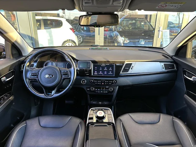 -Complete Kia e-Niro 64 kWh Executiveline. O.a. voorzien van: -Achteruitrijcamera. -Stoelverwarming/Koeling. -Verwarmde zitplaatsen achter. -Leren bekleding. -Stuurverwarming. -State of Health: 100%. -64 kWh Accu. -LED verlichting. -Keyless entry. -JBL Soundsysteem. -Nederlandse Auto. -BTW Auto. -Volledig onderhouden. -Parkeersensoren vóór + achter. Graag tot ziens in Zwartsluis! Constructie: 2020-03; Modeljaar: 2019; 29 kW; Gewicht: 1.712kg; Laadvermogen: 518kg; GVW: 2.230kg; LxBxH: 438x181x157cm; Wielbasis: 270cm; Topsnelheid: 167km/u; Interieurkleur: zwart; 5 zitplaatsen; Z; Dealer onderhouden (onderhoudsboekjes aanwezig); RDW Tellerrapport: https://voertuigrapportdownloaden.rdw.nl/kenteken/H104PP; APK: tot mrt. 2026; Fabrieksgarantie tot: 28-02-2027; Wegenbelasting: € 214-€ 234p/kwrt; Beschikbare afleverpakketten: Afleverpakket Basis (zonder meerprijs); 6 Maanden Van Kesteren garantie (€ 895); 12 Maanden BOVAG garantie (€ 1.295); H-104-PP