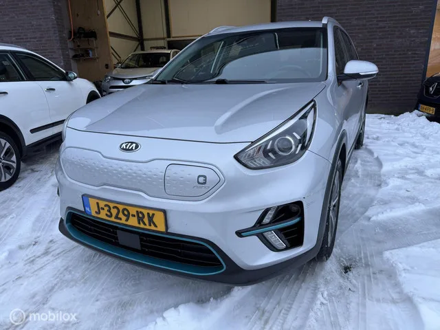 Kia e-Niro DynamicLine 64 kWh. Kenteken: J-329-RK; Merk: Kia; Model: e-Niro; APK tot: 11-07-2026; Tellerstand: 140942 KM; Carrosserievorm: SUV; Aantal deuren: 5; Brandstofsoort: Elektrisch; Accucapaciteit: 64 kWh; Type laadkabel: Type 2/16A 3fase; Geschikt voor snelladen: Ja; Stekkeraansluiting snelladen: CCS (Combo) 7+2 pins; Bouwjaar: 2020; Transmissie: Automaat; Kleur: grijs; Motorcode: EM16; Vermogen: 29 kW / 39pk; Ledig gewicht: 1712 kg; Aantal zitplaatsen: 5; BTW/Marge: BTW aftrekbaar, de prijs is inclusief BTW; Lengte: 438 cm; Breedte: 181 cm; Aantal sleutels: 2; Onderhoudshistorie aanwezig: Ja; Motorrijtuigenbelasting: € 73 - 81 per kwartaal; Emissieklasse: Euro Z. Comfort. Regensensor. Exterieur. Buitenspiegels elektrisch inklapbaar; Buitenspiegels elektrisch verstelbaar; Buitenspiegels verwarmbaar; Chroom delen exterieur; Dakrails; Dimlichten automatisch; Keyless entry; LED achterlichten; LED dagrijverlichting; Lichtmetalen velgen 17"; Mistlampen voor; Parkeersensor achter...