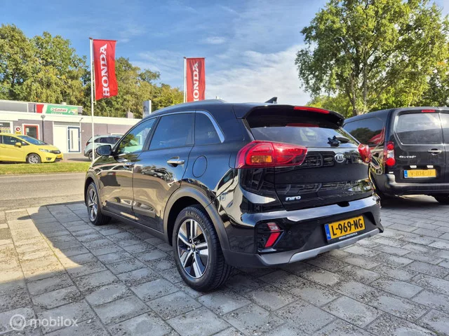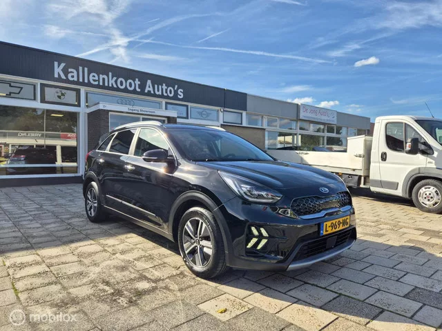 Kia Niro 1.6 GDi Hybrid DynamicPlusLine, Leer, Camera, Carplay. Kenteken: L-969-NG; Merk: Kia; Model: Niro; APK tot: 30-06-2027; Tellerstand: 140933 KM; Carrosserievorm: SUV; Aantal deuren: 5; Brandstofsoort: Hybride (Elektrisch/Benzine); Bouwjaar: 2021; Transmissie: Automaat; Kleur: zwart Metallic; Bekleding: Leder; Kleur interieur: zwart; Motorinhoud: 1580 cc; Aantal cilinders: 4; Motorcode: G4LE; Vermogen: 77 kW / 105pk; Ledig gewicht: 1390 kg; Max. trekgewicht: 1300 kg; Aantal zitplaatsen: 5; Verbruik: 3.7 l/100 km; BTW/Marge: BTW aftrekbaar, de prijs is inclusief BTW; Lengte: 436 cm; Breedte: 181 cm; Aantal sleutels: 2; Onderhoudshistorie aanwezig: Dealer onderhouden; Motorrijtuigenbelasting: € 108 - 117 per kwartaal; Emissieklasse: Euro 6. Comfort. Regensensor. Exterieur. Achterruitwisser; Buitenspiegels elektrisch inklapbaar; Buitenspiegels elektrisch verstelbaar; Buitenspiegels in carrosseriekleur; Buitenspiegels verwarmbaar; Chroom delen exterieur; Dakrails; Dimlichten...
