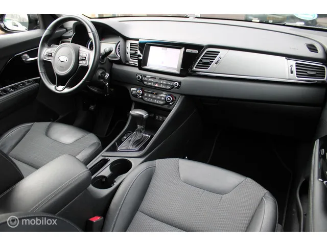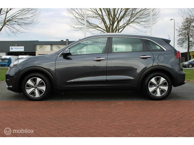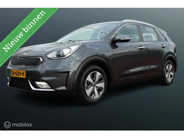 Kia Niro 1.6 GDi Hybrid DynamicLine, Trekhaak, Navi, App connect, Cruise, Clima, Pdc voor + achter + camera, Kenteken: SV-629-H; Merk: Kia; Model: Niro; APK tot: 07-07-2026; Tellerstand: 112641 KM; Carrosserievorm: SUV; Aantal deuren: 5; Brandstofsoort: Hybride (Elektrisch/Benzine); Accucapaciteit: 2 kWh; Bouwjaar: 2018; Transmissie: Automaat; Kleur: grijs Metallic; Bekleding: Stof; Kleur interieur: zwart; Motorinhoud: 1580 cc; Aantal cilinders: 4; Motorcode: G4LE; Vermogen: 104 kW / 142pk; Ledig gewicht: 1400 kg; Max. trekgewicht: 1300 kg; Aantal zitplaatsen: 5; Verbruik: 3.8 l/100 km; BTW/Marge: BTW aftrekbaar, de prijs is inclusief BTW; Lengte: 436 cm; Breedte: 181 cm; Aantal sleutels: 2; Onderhoudshistorie aanwezig: Ja; Motorrijtuigenbelasting: € 226 - 247 per kwartaal; Emissieklasse: Euro 6. Comfort. Cruise control; Regensensor. Exterieur. Achterruitwisser; Achteruitrijcamera; Buitenspiegels elektrisch inklapbaar; Buitenspiegels elektrisch verstel- en verwarmbaar; Centrale...
