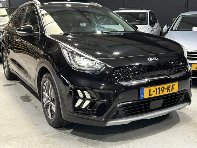 Kia Niro 1.6 GDi Hybrid ExecutiveLine OPENDAK I LEER I XENON I ORG.NL + NAP. Algemene gegevens. Kenteken: L-119-KF. Tellerstand: 183771 KM. Carrosserievorm: SUV. Aantal deuren: 5. Brandstofsoort: Hybride (Elektrisch/Benzine). Bouwjaar: 2021. Transmissie: Automaat. Kleur: Zwart. Technische gegevens. Motorinhoud: 1580 cc. Aantal cilinders: 4. Vermogen: 77 kW / 105pk. Koppel: 265Nm. Ledig gewicht: 1390 kg. Max. trekgewicht: 1300 kg. Energielabel: A. Emissieklasse: Euro 6. Acceleratie (0-100 km/h): 11.5 seconden. Topsnelheid: 162 km/h. Gemiddeld verbruik (gecombineerd): 4.9 l/100km. Functionaliteit. Lengte (cm): 436 cm. Breedte (cm): 181 cm. Financiële gegevens. Motorrijtuigenbelasting: € 226 - 247 per kwartaal. Oorspronkelijke cataloguswaarde: € 36055 (incl. 21% BTW, incl. BPM). BTW/Marge: BTW aftrekbaar, de prijs is inclusief BTW. Opties: Comfort. Regensensor. Exterieur. Buitenspiegels elektrisch inklapbaar; Buitenspiegels elektrisch verstelbaar; Buitenspiegels in carrosseriekleur...