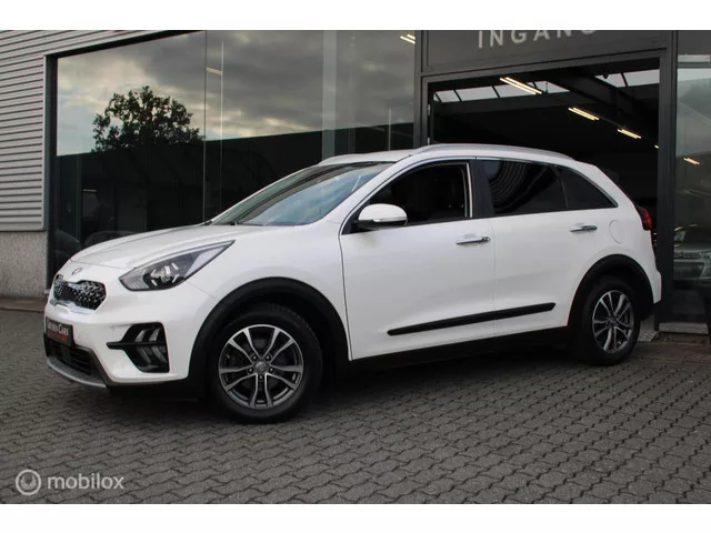 Kia Niro 1.6 GDi Hybrid DynamicPlusLine/Navi/Ecc/Cam/Pdc/. Kenteken: HZT-85-N; Merk: Kia; Model: Niro; Tellerstand: 98458 KM; Carrosserievorm: SUV; Aantal deuren: 5; Brandstofsoort: Hybride (Elektrisch/Benzine); Bouwjaar: 2021; Transmissie: Automaat; Kleur: wit Parelmoer; Bekleding: Leder/Stof; Kleur interieur: antraciet; Motorinhoud: 1580 cc; Aantal cilinders: 4; Vermogen: 77 kW / 105pk; Ledig gewicht: 1390 kg; Aantal zitplaatsen: 5; BTW/Marge: Marge, de BTW is niet aftrekbaar; Aantal sleutels: 2; Onderhoudshistorie aanwezig: Ja; Motorrijtuigenbelasting: € 162 - 176 per kwartaal; Fabrieksgarantie tot: 14-07-2027. Comfort. Regensensor. Exterieur. Achterruitwisser; All Season banden; Buitenspiegels elektrisch inklapbaar; Buitenspiegels elektrisch verstelbaar; Buitenspiegels in carrosseriekleur; Buitenspiegels verwarmbaar; Chroom delen exterieur; Dakrails; Dimlichten automatisch; Extra getint glas achter; Keyless entry; LED dagrijverlichting; Lichtmetalen velgen 16"; Metaalkleur...