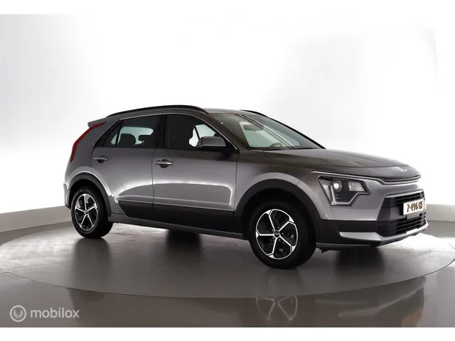 Kia Niro 1.6 GDi Hybrid DynamicLine nav|cam|dab||pdc|lmv16. Kenteken: Z-496-HF; Merk: Kia; Model: Niro; APK tot: 31-03-2027; Tellerstand: 29587 KM; Carrosserievorm: ; Aantal deuren: 5; Brandstofsoort: Hybride (Elektrisch/Benzine); Bouwjaar: 2023; Transmissie: Automaat 6-Traps; Kleur: grijs Metallic; Kleurnaam: Steel Grey Metallic Kleurcode: KLG; Bekleding: Stof; Motorinhoud: 1580 cc; Aantal cilinders: 4; Vermogen: 77 kW / 105pk; Ledig gewicht: 1374 kg; Max. trekgewicht: 1300 kg; Aantal zitplaatsen: 5; Verbruik: 4.4 l/100 km; BTW/Marge: Marge, de BTW is niet aftrekbaar; Aantal sleutels: 2; Onderhoudshistorie aanwezig: Ja; Motorrijtuigenbelasting: (kwartaal / jaar) € 220 / € 880; Bandenmaat voor: 205/60/16; Bandemaat achter: 205/60/16; Wielbasis: 2720 mm. Comfort. Cruise control. Exterieur. Achterruitwisser; Buitenspiegel rechts; Buitenspiegels elektrisch inklap-/verstelbaar en verwarmbaar; Buitenspiegels elektrisch verstelbaar; Buitenspiegels in carrosseriekleur; Buitenspiegels...