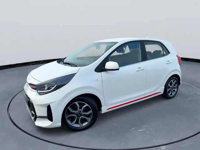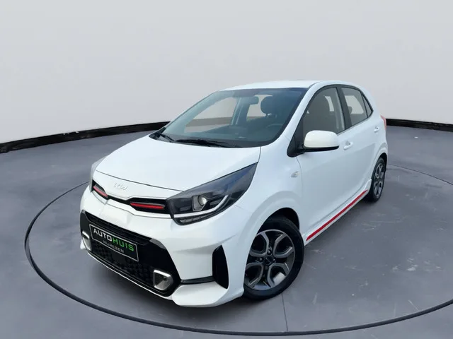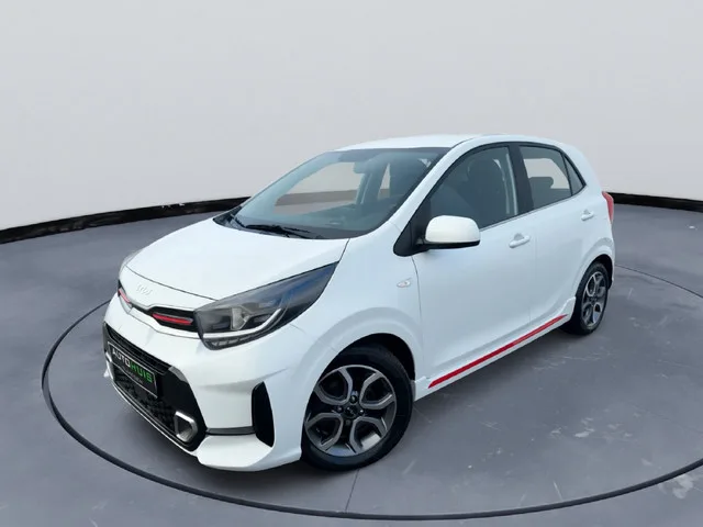 Kia picanto 1,2 CVVT GT-line Automaat 4 cilinder zeer complete mooie auto. Hieronder de fabrieksopties: LED dagrijverlichting. LED achterlichten. Halogeen projectiekoplampen. Zijskirts in carrosseriekleur. Glanzend zwarte exterieurdelen. 15 inch lichtmetalen velgen. Comfort & bediening. Cruise control. Speed Limit Assist (MSLA). Keyless entry & start (Smart Key). Elektrische ramen vóór (auto up/down + beveiliging). Bestuurdersstoel in hoogte verstelbaar. Rear Seat Alert (zonder sensor). Multimedia & interieur. 8 inch infotainmentscherm. Radio met RDS en DAB. Bluetooth met spraakherkenning. 6 luidsprekers incl. tweeters. Sportstuur (leder, 3-spaaks). Automaat-pook met kunstleder. Aluminium interieurafwerking. Parkeren. Achteruitrijcamera met dynamische hulplijnen. Wordt afgeleverd met een nieuwe apk en Garantie. De koffie staat voor u klaar bij Autohuis nijmegen tot snel ! 4WD; 62 kW; 4 cilinders; 1.197cc; Interieur: zwart, Stof; 5 zitplaatsen; Dealer onderhouden (onderhoudsboekjes...