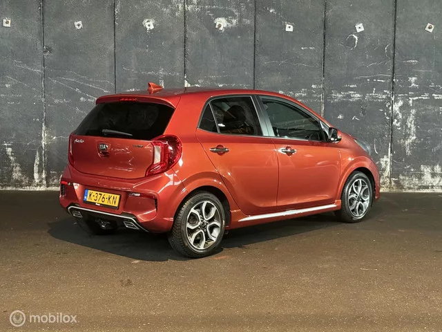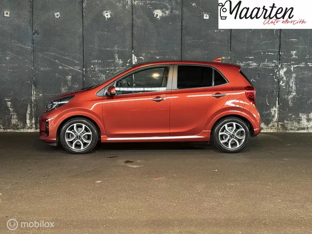 Picanto GT-Line BOMVOL! Kenteken: K-376-KN; Merk: Kia; Model: Picanto; APK tot: 10-07-2026; Tellerstand: 120240 KM; Carrosserievorm: Hatchback; Aantal deuren: 5; Brandstofsoort: Benzine; Bouwjaar: 2021; Transmissie: Handgeschakeld; Kleur: oranje; Motorinhoud: 998 cc; Aantal cilinders: 3; Motorcode: G3LD; Vermogen: 49 kW / 67pk; Ledig gewicht: 874 kg; Aantal zitplaatsen: 4; Verbruik: 4.3 l/100 km; BTW/Marge: Marge, de BTW is niet aftrekbaar; Lengte: 360 cm; Breedte: 160 cm; Motorrijtuigenbelasting: € 92 - 99 per kwartaal; Emissieklasse: Euro 6. Comfort. Cruise control. Exterieur. Achterruitwisser; Buitenspiegel rechts; Buitenspiegels elektrisch inklapbaar; Buitenspiegels elektrisch verstel- en verwarmbaar; Centrale vergrendeling met afstandsbediening; Chroom delen exterieur; Dimlichten automatisch; Extra getint glas achter; Keyless entry; LED achterlichten; LED dagrijverlichting; Lichtmetalen velgen 16"; Mistlampen voor; Parkeersensor achter; Side-skirts; Sportvelgen; Trekhaak met...
