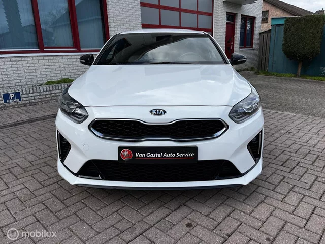 Kia ProCeed 1.0 T-GDI GT-Line / NAVI / CAMERA / CRUISE. Merk: Kia; Model: ProCeed; Tellerstand: 73423 KM; Carrosserievorm: Station; Aantal deuren: 5; Brandstofsoort: Benzine; Bouwjaar: 2019; Transmissie: Handgeschakeld 6; Kleur: wit Parelmoer; Bekleding: Leder/Stof; Kleur interieur: zwart; Motorinhoud: 998 cc; Aantal cilinders: 3; Vermogen: 88 kW / 120pk; Ledig gewicht: 1275 kg; Aantal zitplaatsen: 5; Verbruik: 5.6 l/100 km; BTW/Marge: Marge, de BTW is niet aftrekbaar; Aantal sleutels: 2; Onderhoudshistorie aanwezig: Ja. Comfort. Cruise control; Regensensor. Exterieur. Buitenspiegels elektrisch inklapbaar; Buitenspiegels elektrisch verstelbaar; Buitenspiegels verwarmbaar; Chroom delen exterieur; Dimlichten automatisch; Elektrisch glazen panorama-dak; Extra getint glas achter; Keyless entry; LED achterlichten; LED dagrijverlichting; LED koplampen; Lichtmetalen velgen 17"; Metaalkleur; Mistlampen voor; Parkeer assistent; Parkeersensor achter; Parkeersensor voor; Side-skirts; Trekhaak...