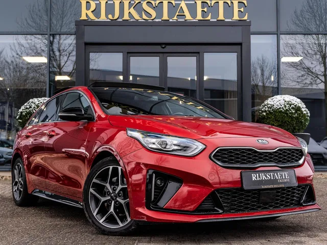 Kia ProCeed 1.4 T-GDI GT-Line|PANO|CAMERA|ACC|NAP|STUURVERW. Kenteken: ZG-484-B; Merk: Kia; Model: ProCeed; APK tot: 17-05-2027; Tellerstand: 220356 KM; Carrosserievorm: Station; Aantal deuren: 5; Brandstofsoort: Benzine; Bouwjaar: 2019; Transmissie: Automaat; Kleur: rood Metallic; Bekleding: Leder/Stof; Kleur interieur: zwart; Motorinhoud: 1353 cc; Aantal cilinders: 4; Motorcode: G4LD; Vermogen: 103 kW / 140pk; Ledig gewicht: 1305 kg; Max. trekgewicht: 1410 kg; Aantal zitplaatsen: 5; Verbruik: 5.8 l/100 km; BTW/Marge: Marge, de BTW is niet aftrekbaar; Lengte: 461 cm; Breedte: 180 cm; Aantal sleutels: 2; Onderhoudshistorie aanwezig: Dealer onderhouden; Motorrijtuigenbelasting: € 199 - 217 per kwartaal; Emissieklasse: Euro 6. Comfort. Cruise control; Regensensor. Exterieur. Achterruitwisser; Buitenspiegel rechts; Buitenspiegels elektrisch inklapbaar; Buitenspiegels elektrisch verstelbaar; Buitenspiegels verwarmbaar; Centrale vergrendeling; Chroom delen exterieur; Dimlichten...