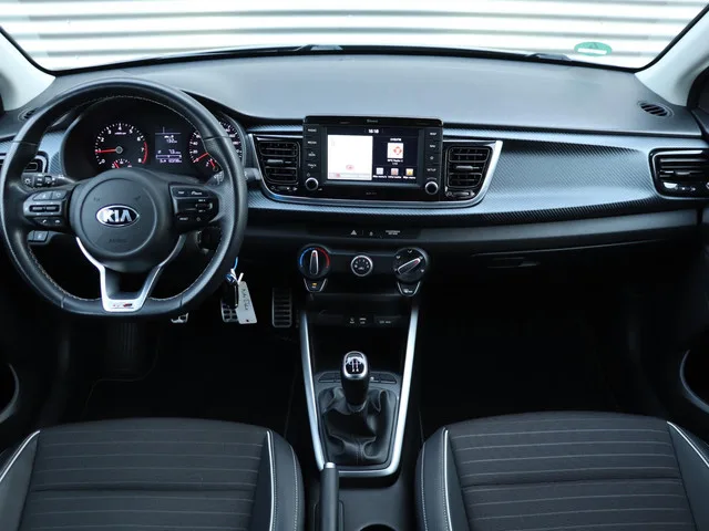 Deze volledig dealer-onderhouden Kia Rio is afkomstig van de eerste eigenaar. De fabrieksgarantie is geldig tot 8-2027 en als de auto bij Kia in onderhoud blijft tot 8-2030. De auto wordt afgeleverd een nieuwe APK, vloeistofcontrole, reinigingsbeurt, gegarandeerde kilometerstand (NAP) en de tenaamstelling van het voertuig bij ons op locatie. 6 versn., Handgeschakeld; 4WD; Bandenmaat: 205/45 R17; 74 kW; 3 cilinders; 998cc; Gewicht: 1.060kg; Laadvermogen: 550kg; GVW: 1.610kg; Max. trekgewicht: 1.000kg; LxBxH: 407x173x145cm; Wielbasis: 258cm; 0-100 km/h: 10,7s; Topsnelheid: 186km/u; Interieurkleur: Antraciet; 5 zitplaatsen; 5,1 l/100km; 6 l/100km; 4,6 l/100km; 118 g/km CO₂; Energielabel C; Euro 6; Onderhoudsboekjes aanwezig; APK: tot feb. 2028; 2 sleutels (2 handzenders); Wegenbelasting: € 145-€ 158p/kwrt; vanaf € 299 p/m (informeer naar de mogelijkheden en voorwaarden); J-046-HZ