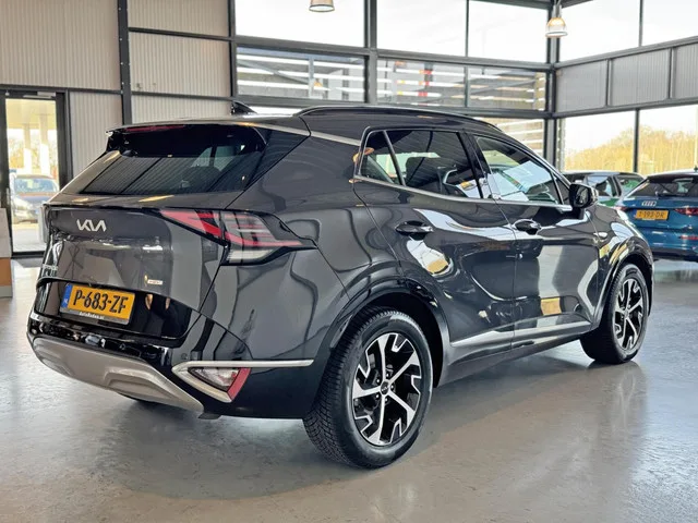 Kia Sportage 1.6 T-GDi Hybrid DynamicPlusLine. Kenteken: P-683-ZF; Merk: Kia; Model: Sportage; APK tot: 10-08-2026; Tellerstand: 91296 KM; Carrosserievorm: SUV; Aantal deuren: 5; Brandstofsoort: Hybride (Elektrisch/Benzine); Bouwjaar: 2022; Transmissie: Automaat; Kleur: grijs Metallic; Motorinhoud: 1598 cc; Aantal cilinders: 4; Motorcode: G4FT; Vermogen: 132 kW / 180pk; Ledig gewicht: 1549 kg; Max. trekgewicht: 1650 kg; Aantal zitplaatsen: 5; Verbruik: 5.8 l/100 km; BTW/Marge: BTW aftrekbaar, de prijs is inclusief BTW; Lengte: 452 cm; Breedte: 187 cm; Aantal sleutels: 2; Onderhoudshistorie aanwezig: Ja; Motorrijtuigenbelasting: € 253 - 276 per kwartaal; Emissieklasse: Euro 6. Comfort. Regensensor. Exterieur. Buitenspiegels elektrisch inklapbaar; Buitenspiegels elektrisch verstel- en verwarmbaar; Dakrails; Dimlichten automatisch; Elektrisch glazen panorama-dak; Extra getint glas achter; Keyless entry; LED achterlichten; LED dagrijverlichting; Lichtmetalen velgen 18"; Parkeersensor...