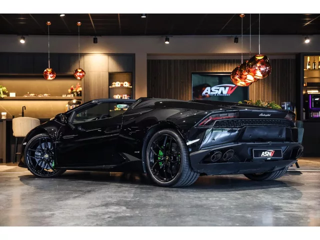 Aluminium sportpedalen en Schakelflippers, Automatische koplampactivering / Lichtsensor, Bekerhouders, Bestuurdersinformatiesysteem, Comfort middenarmsteun met opbergmogelijkheid, Contrast Stitching, Elektrisch bedienbaar zwart gestoffeerde cabrioletkap, Elektrische parkeerrem, Elektrische verstelbare stoelen, Elektrisch inklapbare buitenspiegels, Grille, sierlijsten, louvres in hoogglans zwart, I-Pod aansluiting (Aux- en USB), Individual lederen dashboard, Instaplijsten met "Huracan" opschrift, Led achterlichten, Led dagrijverlichting, lederen/alcantara bekleding in honinggraad design, Led koplampen, Mogelijkheid tot muziek-streaming, Multifunctional Instrument Display, Nose Lift System, Parkeer pakket, Parkeersensor voor en achter, Remzadels groen 'Verde Mantis' gespoten, Sportuitlaatsysteem incl. ronde sporteindpijpen zwart, Stability en Traction Control, Stuurbekrachtiging Plus - Snelheidsafhankelijk, Verstelbaar stuurwiel met F1-schakeling, Vierspaaks multifunctioneel alcantara stuurwiel, Volautomatische comfort airconditioning, Zilveren armaturen verwerkt in het dashboard, Zwart stoffen hemelbekleding