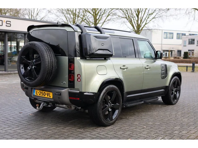 Deze land rover DEFENDER komt uit 2021 en kostte toen € 113.526,-. Deze originele Nederlandse personenauto staat sinds 2021 op kenteken, is voorzien van een benzine én een elektriciteit-motor en een cilinderinhoud van cc. Dit voertuig heeft een continu (elektrisch) vermogen van 48 kW (65 PK). De personenauto heeft een topsnelheid van km per uur. Het verbruik van deze personenauto is gemiddeld 11,7 liter per 100 km en hij weegt 2569 kg. De APK is geldig tot 09-08-2027 en de wegenbelasting bedraagt gemiddeld € 553,75 per kwartaal. 221 kW; 4 cilinders; 1.997cc; Gewicht: 2.569kg; Laadvermogen: 731kg; GVW: 3.300kg; Max. trekgewicht: 3.000kg; Wielbasis: 302cm; 0-100 km/h: 5,6s; Topsnelheid: 209km/u; Interieurkleur: zwart; 5 zitplaatsen; 64 g/km CO₂; Dealer onderhouden (onderhoudsboekjes aanwezig); APK bij aflevering; 2 sleutels (2 handzenders); Wegenbelasting: € 548-€ 600p/kwrt; vanaf € 1.122 p/m (informeer naar de mogelijkheden en voorwaarden); L-250-VL