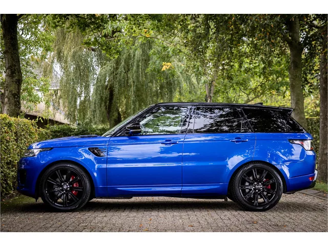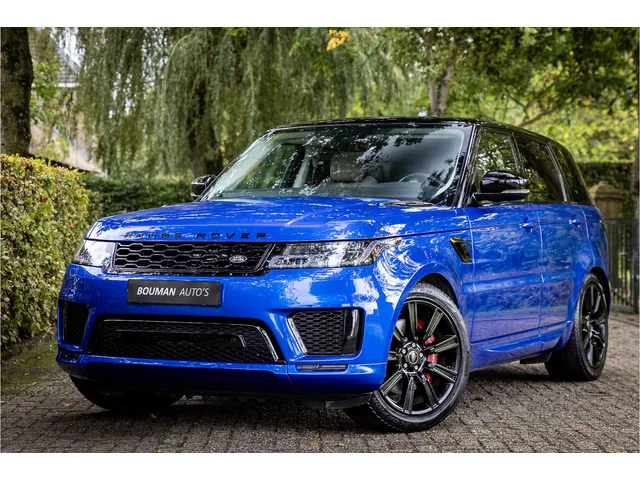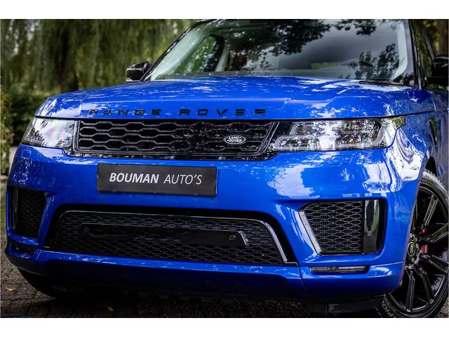 Fraaie Range Rover Sport in HSE Dynamic uitvoering met hybride aandrijflijn. Deze auto is afkomstig van de eerste eigenaar en in nette staat. Lakkleur is SVO Velocity Blue, dit is een exclusieve lak afkomstig van Landrover Special Vehicle Operations, deze afdeling is gespecialiseerd in het individualiseren van Range Rover modellen. Deze lakkleur heeft een meerprijs van 5.500 euro. Het interieur is bekleed met Ebony beige leder. De auto is aan de buitenzijde voorzien van een black pack in combinatie met rode remklauwen. Het dak is gespoten in hoogglans zwart wat een fraai contrast geeft met de blauwe lakkleur. Deze Range Rover is compleet uitgerust met een glazen panoramadak met elektrisch bediend schuif/kanteldeel voorzijde, blind spot monitor dode hoek assistentie, 21" Gloss Black velgen, Meridian Surround audiosysteem, LED koplampen met Adaptive Front Lighting, luchtvering met instelbare hoogteregeling, elektrisch verstelbare stoelen met memory functie, Apple Carplay / Android...
