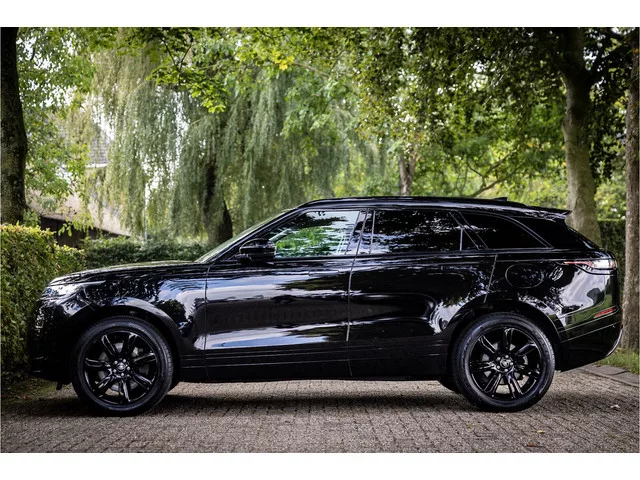 Fraaie Range Rover Velar met hybride aandrijflijn. Deze auto is afkomstig van de eerste eigenaar en volledig Land Rover dealer onderhouden. Lakkleur is Santorini Black metallic en het interieur is bekleed met zwart leder. Aan de buitenzijde is het Premium Black Exterior Pack zichtbaar waarbij de belettering op de auto en sierlijsten in hoogglans zwart zijn uitgevoerd. Deze Velar is compleet uitgerust met een elektrisch bedienbaar glazen panoramadak, adaptive cruise control met stop en go functie, dode hoek assistent, Meridian audiosysteem, 20" Gloss Black velgen, elektrisch 14-voudige verstelbare stoelen met memory functie voor bestuurder, instelbare ambianceverlichting, digitaal instrumentendisplay, keyless entry en start, verkeersbordtekenherkenning, DAB+ tuner, privacy glas achter, navigatiesysteem met touchscreen, verwarmbare voorstoelen, verwarmbaar stuurwiel, bluetooth telefoonintegratie, dakrails zwart, LED mistlampen vooraan, shadow aluminium interieurafwerking, elektrisch...