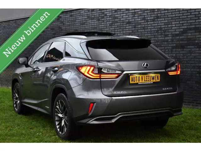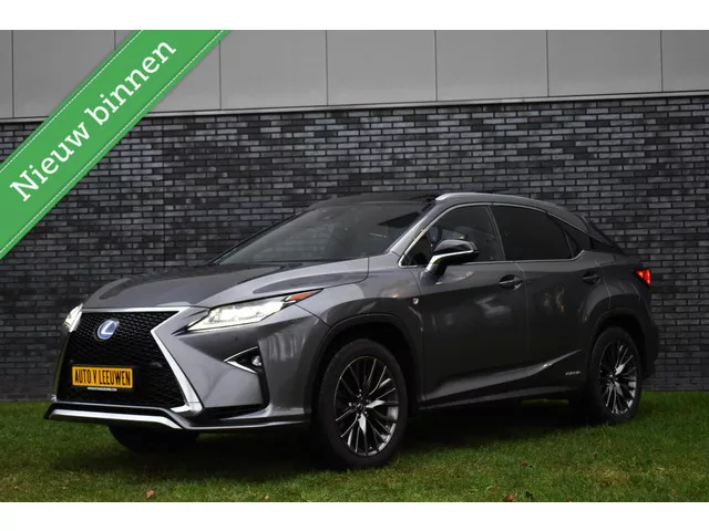 Lexus RX 450h 4WD F Sport Line MARK LEVINSON/PANODAK/CAMERA/ETC.! Merk: Lexus; Model: RX; APK tot: 31-03-2026; Tellerstand: 134822 KM; Carrosserievorm: SUV; Aantal deuren: 5; Brandstofsoort: Hybride (Elektrisch/Benzine); Bouwjaar: 2017; Transmissie: Automaat; Kleur: grijs; Motorinhoud: 3456 cc; Aantal cilinders: 6; Motorcode: 2GR; Vermogen: 230 kW / 313pk; Ledig gewicht: 2075 kg; Max. trekgewicht: 2000 kg; Aantal zitplaatsen: 5; Verbruik: 5.5 l/100 km; BTW/Marge: Marge, de BTW is niet aftrekbaar; Lengte: 489 cm; Breedte: 190 cm; Hoogte: 1685 cm; Motorrijtuigenbelasting: € 398 - 440 per kwartaal; Emissieklasse: Euro 6. Comfort. Regensensor. Exterieur. Adaptief demping systeem; Buitenspiegels elektrisch inklapbaar; Buitenspiegels elektrisch verstel- en verwarmbaar; Centrale vergrendeling met afstandsbediening; Dakrails; Dimlichten automatisch; Elektrisch glazen panorama-dak; Elektrisch schuif-/kanteldak; Extra getint glas achter; F Sport pakket; Glazen schuifdak; Koplampen adaptief...