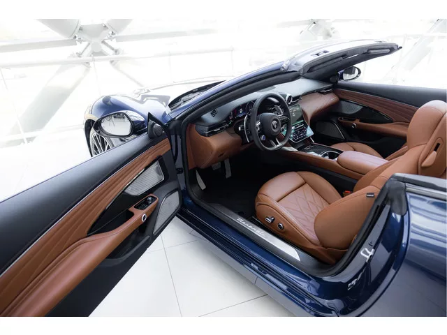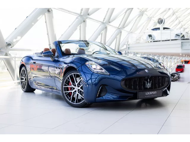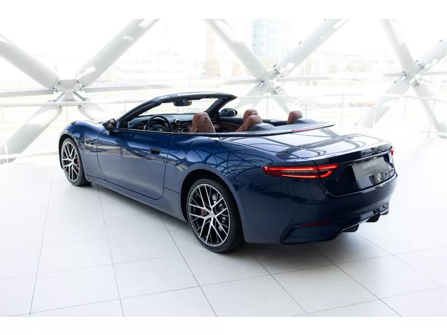 De Maserati GranCabrio Folgore in Blu Modena is een volledig elektrische cabriolet die luxe en sportiviteit op een unieke manier combineert. Het diepe blauwe exterieur in combinatie met het warme Ice Black lederen interieur zorgt voor een stijlvolle uitstraling. Dankzij het cabriodak geniet je op mooie dagen extra van het open rijden. Onder de motorkap ligt een krachtig elektrisch aandrijfsysteem met een gecombineerd vermogen van maar liefst 761 pk. Hierdoor sprint de GranCabrio Folgore van 0-100 km/h in slechts 2,8 seconden. De actieradius bedraagt tot 450 km, waardoor lange ritten mogelijk zijn. De vierwielaandrijving zorgt daarbij voor uitstekende grip en controle, ook bij hogere snelheden. De auto is voorzien van diverse moderne opties, zoals het Tech Assistance Pack en Comfort Pack, een Sonus Faber High Premium Sound System en een head up display die belangrijke informatie in het zicht projecteert. Met het windscherm en de verwarmde zetels rijd je ook bij lagere temperaturen...