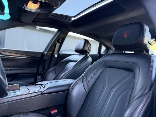 Maserati Quattroporte 3.0 S Q4 411pk Navigatie/Stoelverwarm. Kenteken: HKF-59-G; Merk: Maserati; Model: Quattroporte; APK tot: 14-08-2026; Tellerstand: 73152 KM; Carrosserievorm: Sedan; Aantal deuren: 4; Brandstofsoort: Benzine; Bouwjaar: 2016; Transmissie: Automaat; Kleur: zwart; Motorinhoud: 2979 cc; Aantal cilinders: 6; Vermogen: 302 kW / 411pk; Ledig gewicht: 1800 kg; Aantal zitplaatsen: 5; Verbruik: 9.6 l/100 km; BTW/Marge: BTW aftrekbaar, de prijs is inclusief BTW; Motorrijtuigenbelasting: € 333 - 365 per kwartaal; Emissieklasse: Euro 6. Comfort. Boordcomputer; Cruise control; Regensensor. Exterieur. Bi-xenon koplampen; Buitenspiegel(s) automatisch dimmend; Buitenspiegels elektrisch inklapbaar; Buitenspiegels elektrisch verstel- en verwarmbaar; Chroom delen exterieur; Dimlichten automatisch; Elektrisch schuif-/kanteldak; Geluid- en warmtewerend glas; Keyless entry; Koplampen adaptief; Koplampreiniging; LED achterlichten; LED dagrijverlichting; Lichtmetalen velgen 20"...