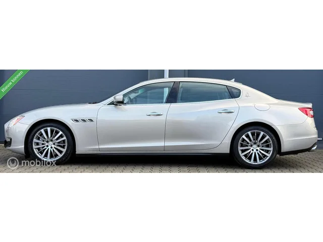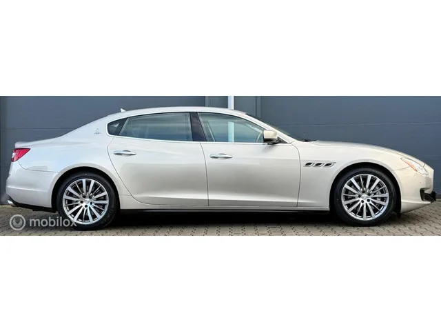Maserati Quattroporte 3.0 S Q4 Pano.dak/Leder/19"/Elektr.pakket. Kenteken: GLD-94-H; Merk: Maserati; Model: Quattroporte; APK tot: 20-06-2026; Tellerstand: 167810 KM; Carrosserievorm: Sedan; Aantal deuren: 4; Brandstofsoort: Benzine; Bouwjaar: 2014; Transmissie: Automaat; Kleur: grijs Metallic; Motorinhoud: 2979 cc; Aantal cilinders: 6; Motorcode: M156 B; Vermogen: 302 kW / 411pk; Ledig gewicht: 1955 kg; Aantal zitplaatsen: 5; Verbruik: 9.7 l/100 km; BTW/Marge: Marge, de BTW is niet aftrekbaar; Lengte: 526 cm; Breedte: 195 cm; Hoogte: 1476 cm; Onderhoudshistorie aanwezig: Dealer onderhouden; Motorrijtuigenbelasting: € 387 - 423 per kwartaal; Emissieklasse: Euro 5. Pakket: Executive Pack. Achterstoelen elektrisch verstelbaar; Airco separaat achter; Keyless entry; Koelbox; Luxe lederen bekleding; Stoel ventilatie achter; Stoel ventilatie voor. Comfort. Cruise control; Regensensor. Exterieur. Buitenspiegels elektrisch verstelbaar; Buitenspiegels verwarmbaar; Elektrisch...
