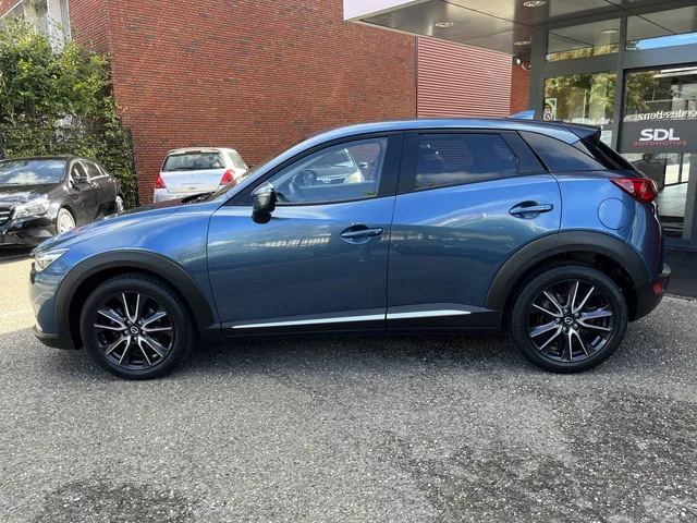 Alle technologie in de Mazda CX-3 is er op gericht om uw rit veilig en gemakkelijk te laten verlopen. Een viercilinder benzinemotor en een automatische transmissie verzorgen de aandrijving van deze SUV. Deze Mazda is voorzien van een mooie en comfortabele lederen bekleding. Ga samen met uw bijrijder lekker zitten in de verwarmbare voorstoelen. Comfortabel houvast krijgt u van het verwarmd stuurwiel. Bij de uitrusting van deze Mazda horen onder meer 18 inch lichtmetalen velgen, LED koplampen, dakspoiler, donker getint glas achter, in delen neerklapbare achterbank en LED-achterlichten. Een vergeten muurtje, een verborgen paaltje? Dat gebeurt niet meer, dankzij de achteruitrijcamera. Met adaptive cruise control houdt de auto zelfstandig afstand tot uw voorligger. Een veiligheidsverhogende optie waarmee u comfortabel onderweg bent. Praat tegen deze auto en de auto doet wat u wilt dankzij de ingebouwde spraakbediening. Het vernuftige Bose audiosysteem levert een muzikale sensatie...