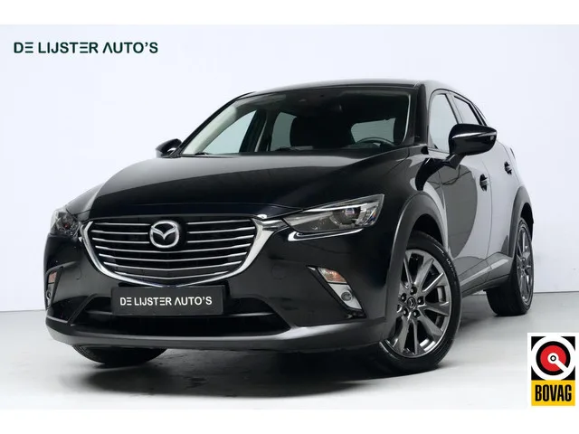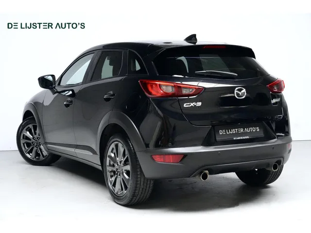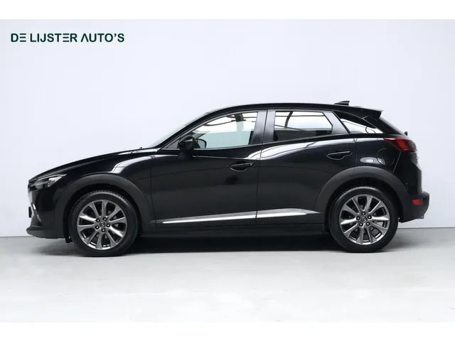 Mazda CX-3 2.0 SkyActiv-G 120 GT-M Automaat | Navigatie | Cruise | Stoelverwarming | Camera | HUD | Pdc | Led | Leder/Alcantara |. Merk: Mazda; Model: CX-3; APK tot: 13-07-2026; Tellerstand: 104646 KM; Carrosserievorm: SUV; Aantal deuren: 5; Brandstofsoort: Benzine; Bouwjaar: 2018; Transmissie: Automaat; Kleur: zwart Metallic; Bekleding: Leder; Motorinhoud: 1998 cc; Aantal cilinders: 4; Vermogen: 88 kW / 120pk; Ledig gewicht: 1170 kg; Max. trekgewicht: 1200 kg; Aantal zitplaatsen: 5; Verbruik: 5.8 l/100 km; BTW/Marge: Marge, de BTW is niet aftrekbaar; Lengte: 428 cm; Breedte: 177 cm; Hoogte: 154 cm; Aantal sleutels: 2; Onderhoudshistorie aanwezig: Ja; Emissieklasse: Euro 6; Velgmaat: 18 inch; Wielbasis: 2570 mm. Pakket: Pure White Pack. Elektrisch verstelb. bestuurdersstoel met geheugen; Lederen interieur. Comfort. Boordcomputer; Cruise control; Regensensor. Exterieur. Achterruitwisser; Bluetooth media; Buitensp.elektr.verstel -verwarmb.+inklapbaar; Buitenspiegels elektrisch...