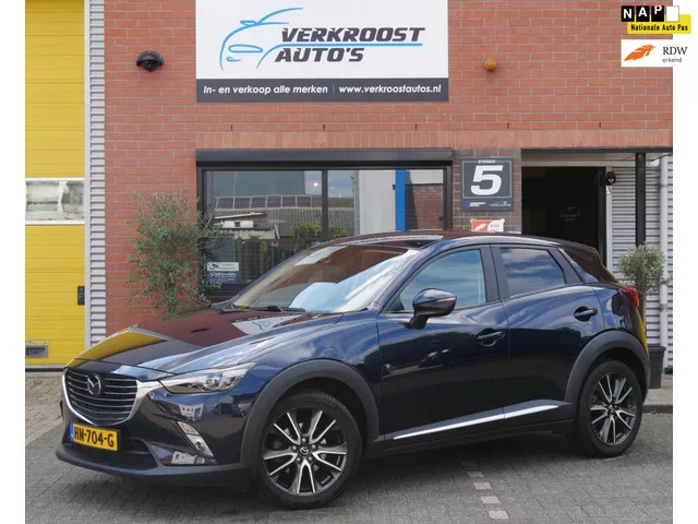 zeer mooie Mazda cx-3 uit het jaar 2015. deze Mazda is zeer mooi uitgevoerd in de opties en zeer netjes onderhouden. volledig schadevrij. Meer informatie: Voorwielaandrijving; Vermogen: 88 kW (120 PK); Aantal cilinders: 4; Motorinhoud: 1.998 cc; Ledig gewicht: 1.130 kg; Laadvermogen: 560 kg; GVW: 1.690 kg; Max. trekgewicht: 1.200 kg (ongeremd 605 kg); Wielbasis: 257 cm; Acceleratie (0-100): 9,0 s; Topsnelheid: 192 km/u; Interieurkleur: Zwart; 5 zitplaatsen; Gemiddeld brandstofverbruik: 5,9 l/100km (1 op 16,9); Brandstofverbruik in de stad: 7,4 l/100km (1 op 13,5); Brandstofverbruik op de snelweg: 4,9 l/100km (1 op 20,4); CO₂-uitstoot: 137 g/km; Energielabel: C; Emissieklasse: Euro 6; Nieuwe APK bij aflevering; 2 sleutels (2 handzenders); Motorrijtuigenbelasting: € 140 - € 154 per kwartaal