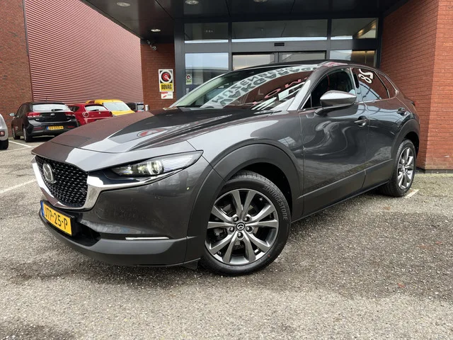 Het eigentijdse ontwerp en de toonaangevende techniek maken van iedere Japanse auto een kwaliteitsproduct. Dat is ook te merken aan deze Mazda CX-30. De uitstekende prestaties van deze auto komen van de viercilinder benzinemotor en de automatische transmissie. Wat trekt u meer aan: een lederen interieur of een elektrisch bedienbare achterklep? Wacht, u hoeft niet te kiezen. Deze auto heeft het allebei! Stoelverwarming hoort ook bij de uitrusting van deze auto. Pak aan, 't is winter! Zo'n verwarmd stuurwiel is dan bijzonder prettig! Tot de voorzieningen van deze auto behoren 18 inch lichtmetalen velgen, LED koplampen, dakspoiler, donker getint glas achter, in delen neerklapbare achterbank en LED-achterlichten. Wat een gemak, die achteruitrijcamera. Alles in beeld zonder capriolen. Adaptive cruise control houdt de ingestelde snelheid vast en houdt automatisch afstand tot uw voorligger. Hoe is het met de banden, de accu en andere onderdelen? Connected Services maakt het inzichtelijk,...