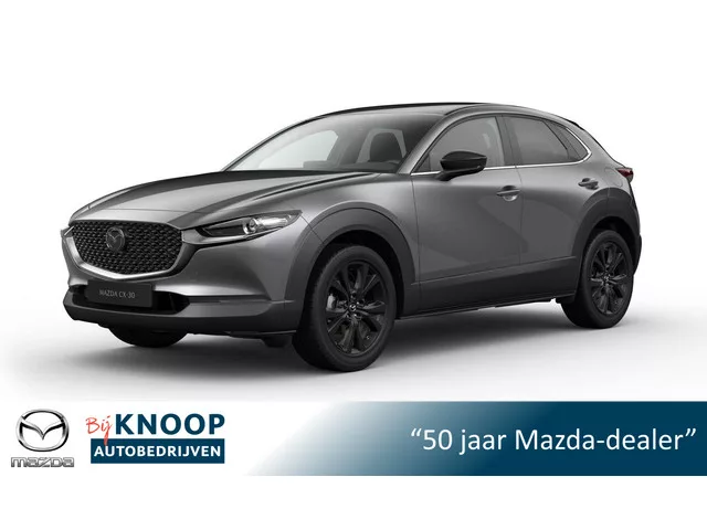 VOORRAAD Mazda CX-30 e-Skyactiv 186pk M-Hybrid automaat - Homura uitvoering in de kleur Machine Gray metallic. Direct leverbaar met 6 jaar fabrieksgarantie en € 3.100,- voorraadkorting! . Met zijn ruimte en zijn prestaties is dit de auto die bij u past. Dit is een splinternieuwe auto, die nu uit voorraad leverbaar is. Hij heeft een benzinemotor en een automatische transmissie. De verwarmbare voorstoelen benadrukken nog maar eens dat we hier te maken hebben met een regelrechte verwenauto voor bestuurder en bijrijder. Met een druk op de knop gaat de elektrische achterklep open. Verder is de Mazda uitgerust met: 18 inch lichtmetalen velgen, LED koplampen, dakspoiler, elektrisch inklapbare buitenspiegels, extra getint glas en LED-achterlichten. 'Boem is ho'? Niet met deze achteruitrijcamera. U ziet achter net zo goed als voor en krijgt een duidelijk geluidssignaal! Met adaptive cruise control houdt deze auto automatisch afstand tot uw voorligger. Het infotainmentsysteem bedient u met uw...
