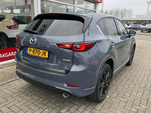 Prachtige volle Mazda CX5 van de eerste eigenaar met zeer lage km stand en de sterke 2.5 motor met automaat. Mazda CX-5 2.5 SkyActiv-G 194 Signature 1e eigenaar. Kenteken: P-870-JK; Merk: Mazda; Model: CX-5; APK tot: 31-03-2026; Tellerstand: 33672 KM; Carrosserievorm: SUV; Aantal deuren: 5; Brandstofsoort: Benzine; Bouwjaar: 2022; Transmissie: Automaat; Kleur: grijs Metallic; Kleurnaam: POLYMETAL GREY; Bekleding: Leder; Motorinhoud: 2488 cc; Aantal cilinders: 4; Motorcode: PE; Vermogen: 143 kW / 195pk; Ledig gewicht: 1541 kg; Max. trekgewicht: 2000 kg; Aantal zitplaatsen: 5; Verbruik: 7.1 l/100 km; BTW/Marge: Marge, de BTW is niet aftrekbaar; Lengte: 458 cm; Breedte: 185 cm; Hoogte: 1680 cm; Aantal sleutels: 2; Onderhoudshistorie aanwezig: Dealer onderhouden; Motorrijtuigenbelasting: € 243 - 268 per kwartaal; Emissieklasse: Euro 6. Comfort. Boordcomputer; Regensensor. Exterieur. 19 inch lichtmetalen velgen ; Achterruitwisser; Achterspoiler; Buitenspiegel rechts; Buitenspiegels...