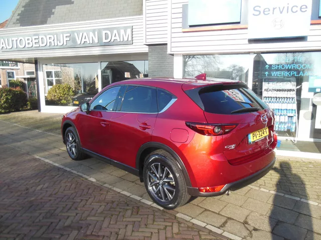 Met een auto als deze Mazda CX-5 komt u absoluut goed voor de dag. Deze auto uit 2017 heeft 56000 kilometer gereden. Deze dealeronderhouden auto is van de eerste eigenaar. De krachtige motor geeft deze Mazda uitstekende prestaties. De lederen bekleding geeft het interieur een hoogwaardige uitstraling. Op koude en donkere dagen zijn de verwarmbare voorstoelen een uitkomst. Bij de rijke uitrusting horen ook schuif- en kanteldak, 19 inch lichtmetalen velgen, LED koplampen, elektrisch inklapbare buitenspiegels, donker getint glas achter en in delen neerklapbare achterbank. Twijfelen hoeveel ruimte u achter de auto heeft? Met de achteruitrijcamera weet u altijd hoeveel centimeter! Adaptive cruise control is veilig en comfortabel. De snelheidsregelaar houdt automatisch afstand tot het voertuig dat voor u rijdt. De radio harder of zachter zetten of iemand uit uw contactenlijst bellen. Dankzij de spraakbediening doet u dit allemaal met uw stem. Ook de akoestiek in de auto wordt optimaal...