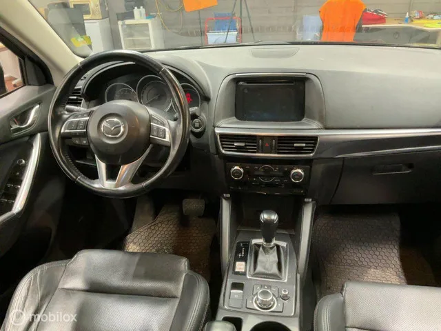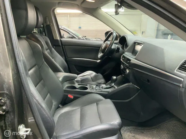 Mazda CX-5 2.5 SkyActiv-G 192 GT-M 4WD. Merk: Mazda; Model: CX-5; APK tot: 30-06-2027; Tellerstand: 86217 KM; Carrosserievorm: SUV; Aantal deuren: 5; Brandstofsoort: Benzine; Bouwjaar: 2015; Transmissie: Automaat; Kleur: bruin Metallic; Kleurnaam: Titanium Flash; Bekleding: Leder; Kleur interieur: zwart; Motorinhoud: 2488 cc; Aantal cilinders: 4; Vermogen: 141 kW / 192pk; Ledig gewicht: 1415 kg; Aantal zitplaatsen: 5; Verbruik: 7.2 l/100 km; BTW/Marge: Marge, de BTW is niet aftrekbaar. Comfort. Boordcomputer; Cruise control; Regensensor. Exterieur. 19 inch lichtmetalen velgen; Achterruitwisser; Achteruitrijcamera; Buitenspiegel rechts; Buitenspiegels elektrisch inklapbaar; Buitenspiegels elektrisch verstel- en verwarmbaar; Buitenspiegels elektrisch verstelbaar; Centrale vergrendeling; Centrale vergrendeling met afstandsbediening; Dimlichten automatisch; Extra getint glas achter; Getint glas; Glazen schuifdak; Keyless entry; Koplampen adaptief; Koplampreiniging; LED achterlichten...