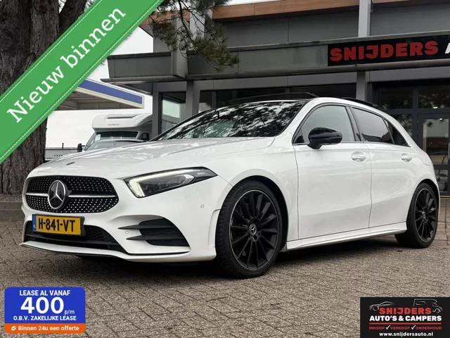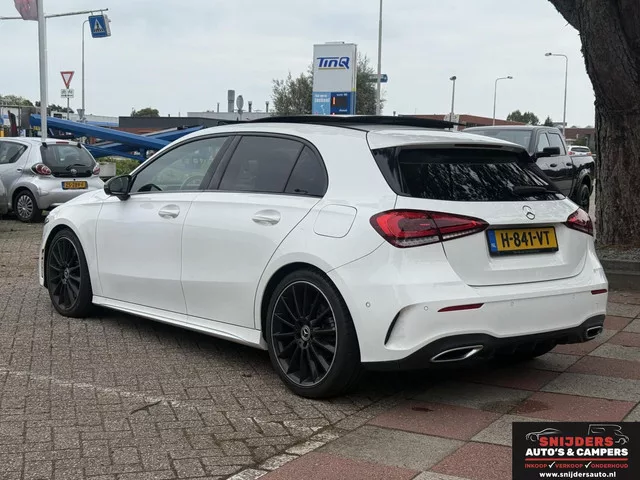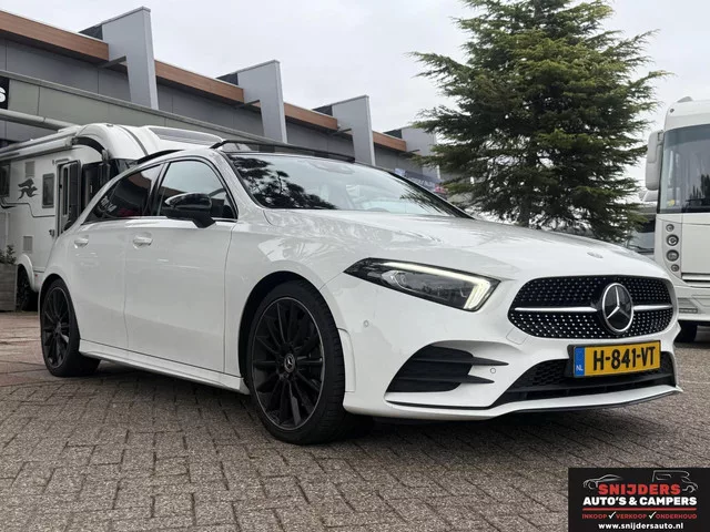 Mooie en luxe uitvoering. Mercedes A-klasse 250 Premium Plus. Kenteken: H-841-VT; Merk: Mercedes; Model: A-klasse; APK tot: 01-04-2027; Tellerstand: 143742 KM; Carrosserievorm: Hatchback; Aantal deuren: 5; Brandstofsoort: Benzine; Bouwjaar: 2019; Transmissie: Automaat; Kleur: wit; Bekleding: Leder/Alcantara; Kleur interieur: zwart; Motorinhoud: 1991 cc; Aantal cilinders: 4; Motorcode: 260920; Vermogen: 165 kW / 225pk; Ledig gewicht: 1355 kg; Max. trekgewicht: 1600 kg; Aantal zitplaatsen: 5; Verbruik: 6.8 l/100 km; BTW/Marge: Marge, de BTW is niet aftrekbaar; Breedte: 180 cm; Aantal sleutels: 2; Onderhoudshistorie aanwezig: Ja; Motorrijtuigenbelasting: € 217 - 240 per kwartaal; Emissieklasse: Euro 6. Pakket: Rijassistentiepakket. Achteruitrij assistent; Bots herkenning en activatie; Cruise control adaptief met Stop&Go en stuurhulp; Dodehoekdetectie met correctie; Kruisend verkeer detectie; Uitwijk assistent. Comfort. Cruise control; Regensensor. Exterieur. AMG-styling...