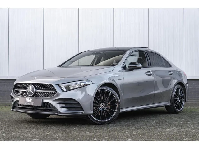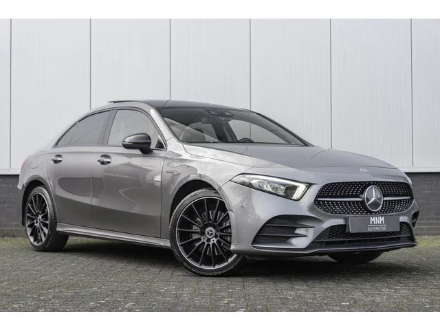Mercedes A-klasse 250e AMG |Pano|Camera|Burmester. Kenteken: GFN-81-V; Merk: Mercedes; Model: A-klasse; APK tot: 14-07-2027; Tellerstand: 130930 KM; Carrosserievorm: Sedan; Aantal deuren: 4; Brandstofsoort: Hybride (Elektrisch/Benzine); Bouwjaar: 2020; Transmissie: Automaat; Kleur: grijs; Bekleding: Leder/Stof; Motorinhoud: 1332 cc; Aantal cilinders: 4; Motorcode: 282914; Vermogen: 118 kW / 161pk; Ledig gewicht: 1600 kg; Max. trekgewicht: 1600 kg; Aantal zitplaatsen: 5; Verbruik: 1 l/100 km; BTW/Marge: Marge, de BTW is niet aftrekbaar; Lengte: 456 cm; Breedte: 180 cm; Aantal sleutels: 2; Onderhoudshistorie aanwezig: Ja; Motorrijtuigenbelasting: € 280 - 306 per kwartaal; Emissieklasse: Euro 6. Pakket: AMG Line. AMG-styling; Electronic climate control; Sportstoelen. Pakket: Night pakket. Extra getint glas achter; Getint warmtewerend glas; Warmtewerend glas. Comfort. Cruise control; Regensensor. Exterieur. AMG-styling; Buitenspiegel(s) automatisch dimmend; Buitenspiegels elektrisch...