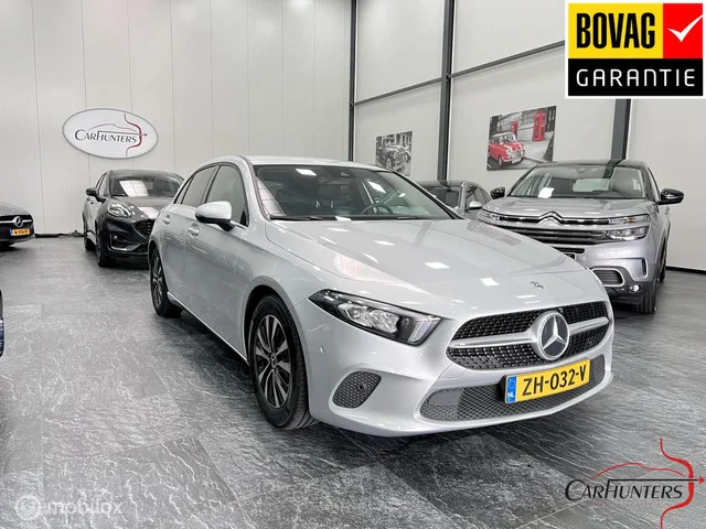 Mercedes A-klasse 180 automaat Advantage 2019. Kenteken: ZH-032-V; Merk: Mercedes; Model: A-klasse; Tellerstand: 142604 KM; Carrosserievorm: Hatchback; Aantal deuren: 5; Brandstofsoort: Benzine; Bouwjaar: 2019; Transmissie: Automaat; Kleur: zilver; Motorinhoud: 1332 cc; Aantal cilinders: 4; Motorcode: 282914; Vermogen: 100 kW / 136pk; Ledig gewicht: 1265 kg; Max. trekgewicht: 1400 kg; Aantal zitplaatsen: 5; Verbruik: 5.2 l/100 km; BTW/Marge: Marge, de BTW is niet aftrekbaar; Lengte: 446 cm; Breedte: 180 cm; Aantal sleutels: 2; Motorrijtuigenbelasting: € 190 - 207 per kwartaal; Emissieklasse: Euro 6. Comfort. Cruise control; Regensensor. Exterieur. Buitenspiegel(s) automatisch dimmend; Buitenspiegels elektrisch inklapbaar; Centrale vergrendeling met afstandsbediening; Dimlichten automatisch; LED dagrijverlichting; LED koplampen; Parkeer assistent; Parkeersensor voor en achter; Side-skirts; Sportvelgen; Verlaagde carrosserie. Infotainment. Multimedia-voorbereiding; Navigatiesysteem...