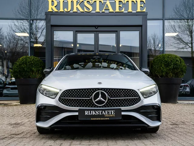 Mercedes A-klasse A200 AMG|NW MODEL|PANO|CAMERA|18'|MEMORY. Merk: Mercedes; Model: A-klasse; APK tot: 06-10-2027; Tellerstand: 12841 KM; Carrosserievorm: Hatchback; Aantal deuren: 5; Brandstofsoort: Benzine; Bouwjaar: 2023; Transmissie: Automaat; Kleur: zilver Metallic; Bekleding: Alcantara; Kleur interieur: zwart; Motorinhoud: 1332 cc; Aantal cilinders: 4; Vermogen: 120 kW / 163pk; Ledig gewicht: 1340 kg; Aantal zitplaatsen: 5; Verbruik: 5.9 l/100 km; BTW/Marge: Marge, de BTW is niet aftrekbaar; Aantal sleutels: 2; Onderhoudshistorie aanwezig: Dealer onderhouden. Pakket: Winter pakket. Ruitensproeiers/wisserbladen verwarmbaar; Stuur verwarmd. Comfort. Cruise control; Regensensor. Exterieur. AMG-styling; Achterruitwisser; Buitenspiegel rechts; Buitenspiegel(s) automatisch dimmend; Buitenspiegels elektrisch inklapbaar; Buitenspiegels elektrisch verstel- en verwarmbaar; Buitenspiegels elektrisch verstelbaar; Buitenspiegels met verlichting; Buitenspiegels verwarmbaar; Centrale...