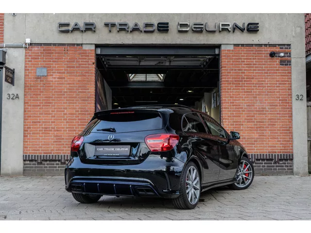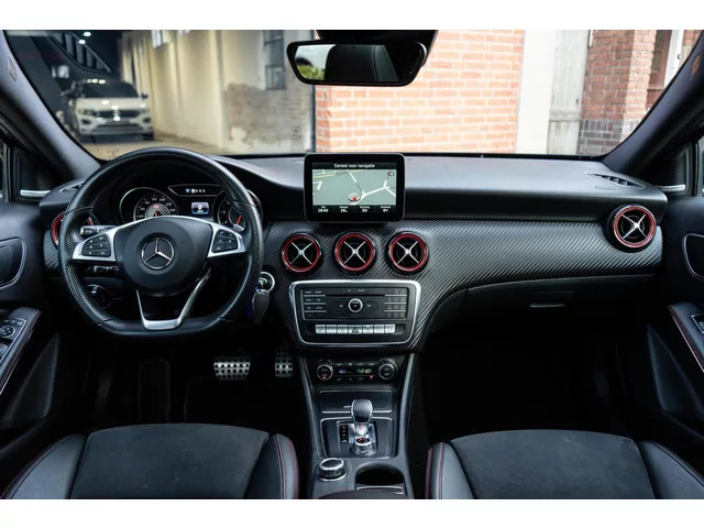 Mercedes A-klasse AMG 45 4MATIC Pano / H&K / ACC.  . Kenteken: GFL-10-L; Merk: Mercedes; Model: A-klasse; APK tot: 31-05-2026; Tellerstand: 133794 KM; Carrosserievorm: Hatchback; Aantal deuren: 5; Brandstofsoort: Benzine; Bouwjaar: 2016; Transmissie: Automaat; Kleur: zwart; Bekleding: Alcantara; Kleur interieur: zwart; Motorinhoud: 1991 cc; Aantal cilinders: 4; Motorcode: 133980; Vermogen: 280 kW / 381pk; Ledig gewicht: 1455 kg; Aantal zitplaatsen: 5; Verbruik: 6.9 l/100 km; BTW/Marge: Marge, de BTW is niet aftrekbaar; Lengte: 438 cm; Breedte: 178 cm; Aantal sleutels: 2; Onderhoudshistorie aanwezig: Ja; Motorrijtuigenbelasting: € 241 - 264 per kwartaal; Emissieklasse: Euro 6. Pakket: AMG exclusiefpakket. Lederen bekleding; Lederen sportstoelen; Lederen versnellingspook; Lendesteun(en) verstelbaar; Passagiersstoel in hoogte verstelbaar; Sportstoelen; Sportstuur; Stuur leder; Voorstoelen verwarmd. Pakket: Parkeer pakket. Parkeer assistent; Parkeersensor voor en achter. Comfort. Cruise...