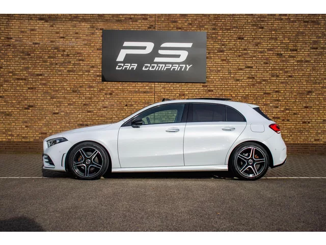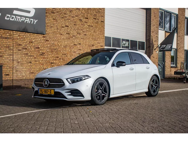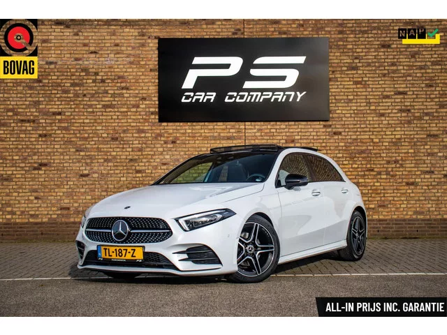 Mercedes A-klasse 200 Premium Plus, Full option, NAP, 1e eig, Pano, Burmester, Ambient, Carplay, Leder, Stoelverwarming/koeling. Mercedes A-klasse 200 Premium Plus, Full option, NAP, 1e eig. Kenteken: TL-187-Z; Merk: Mercedes; Model: A-klasse; APK tot: 20-09-2026; Tellerstand: 71698 KM; Carrosserievorm: Hatchback; Aantal deuren: 5; Brandstofsoort: Benzine; Bouwjaar: 2018; Transmissie: Automaat; Kleur: wit; Bekleding: Leder; Kleur interieur: zwart; Motorinhoud: 1332 cc; Aantal cilinders: 4; Motorcode: 282914; Vermogen: 120 kW / 163pk; Ledig gewicht: 1275 kg; Max. trekgewicht: 1600 kg; Aantal zitplaatsen: 5; Verbruik: 5.3 l/100 km; BTW/Marge: BTW aftrekbaar, de prijs is inclusief BTW; Lengte: 444 cm; Breedte: 180 cm; Aantal sleutels: 2; Onderhoudshistorie aanwezig: Ja; Motorrijtuigenbelasting: € 192 - 211 per kwartaal; Emissieklasse: Euro 6. Comfort. Cruise control; Regensensor. Exterieur. AMG-styling; Achterruitwisser; Adaptief demping systeem; Buitenspiegel(s) automatisch dimmend...