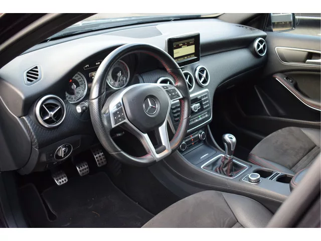 Deze Mercedes-Benz A-klasse is ontwikkeld om uw leven gemakkelijker te maken. En comfortabeler. En veiliger. Kijk maar naar zijn ruimtelijke interieur, zijn stijlvol gelijnde carrosserie en zijn krachtige motor. Als u het over uitstraling hebt, dan kunt u niet om het effect van de AMG-sportpakket heen. Hij heeft een benzinemotor en een handgeschakelde zesversnellingsbak. Comfortabel zitten, ook als de rit onstuimig is? Dat kan met de sportstoelen. Xenonverlichting staat borg voor helderwit licht en een krachtige lichtbundel. U wordt in deze auto ook getrakteerd op 18 inch lichtmetalen velgen, AMG-sportpakket, sportonderstel, warmtewerend glas, zwarte hemelbekleding en in delen neerklapbare achterbank. Het navigatiesysteem en het audio-installatiesysteem bedient u met knoppen op het stuur. Het luxeniveau in deze Mercedes-Benz is niet alleen gericht op comfort, maar ook op uw veiligheid. Tal van sensoren helpen u om de omgeving in de gaten te houden. De automatisch inschakelbare...