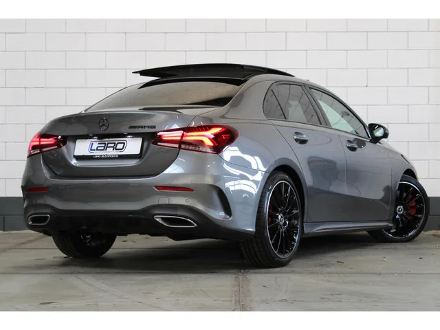 Highlights: - AMG Line. - Mountain gray lak. - Elektrisch schuif Panoramadak. - 19" AMG velgen. - 360 Camera. - Multibeam LED. - Burmester Audio. - Panamericana grill. - AMG Vloermatten. - Night pakket. - Keyless start/stop. - Widescreen. - PARKTONIC-parkeerassistent. - Augmented reality navigatie. - Apple CarPlay / Android auto. - Drive select met demperregeling. - Stoelverwarming. - Interieur voorverwarming. - Sfeerverlichting 64 kleurig. - Dealer onderhouden. - a250. - Sedan / limousine. 7 versn., Automaat; 4WD; 165 kW; 4 cilinders; 1.991cc; Gewicht: 1.365kg; Laadvermogen: 630kg; GVW: 1.995kg; Max. trekgewicht: 1.600kg; Wielbasis: 273cm; 0-100 km/h: 6,2s; Topsnelheid: 250km/u; 5 zitplaatsen; 6,7 l/100km; 141 g/km CO₂; Energielabel D; Euro 6; Dealer onderhouden (onderhoudsboekjes aanwezig); APK bij aflevering; Schadevrij; 2 sleutels (2 handzenders); Wegenbelasting: € 226-€ 247p/kwrt; vanaf € 502 p/m (informeer naar de mogelijkheden en voorwaarden); J-268-VN