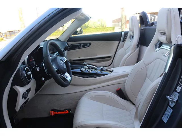 Met trots presenteren wij u deze unieke en one of a kind Mercedes-Benz AMG GT Roadster 4.0 C met zwaarte motorisering met maar liefst 558 PK. Dit betreft een originele Nederlands geleverde Mercedes AMG GTC ( uniek geen import) in de fantastische kleur Selenitgrau Metallic-Matte. De Mercedes is geheel dealer onderhouden en door de vorige eigenaar is kosten noch moeite gespaard om de auto in top conditie te houden. Dit betreft een BTW auto voor de zakelijke rijder is eventueel 21% BTW terug te vorderen bij de belastingdienst. Deze auto verkeert zowel van binnen als van buiten in absolute nieuwstaat! 1000KM geleden bij de officiële Mercedes dealer ASV nog een grote beurt gehad. # Highlights. - Keramische remmen. - Selenitgrau Metallic-Matte. - Op afstand te openen en te sluiten cabriodak. - Schaalstoelen. - Nekverwarming (airskarf). - Stoelverkoeling. - Bestuurdersstoel en bijrijdersstoel met memory functie. - Elektrische stuurwiel. - Distronic. - DTR+ Stuurhulp. - AMG Achteras...