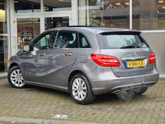 Het is een nette en comfortabele auto, deze Mercedes-Benz B-klasse. Hij heeft 95858  kilometer gelopen, de onderhoudsgeschiedenis is bekend. De uitstekende prestaties van deze auto komen van de viercilinder benzinemotor en de automatische transmissie. De auto is uitgerust met lederen bekleding. Koude start? Niet met de verwarmbare voorstoelen! Als u blij wordt van licht en ruimte dan zult u zeker genieten van het elektrisch bediende panoramadak. Xenonverlichting zorgt voor een krachtige en heldere lichtbundel. Het aanwezige start-stopsysteem draagt actief bij aan brandstofbesparing. Ook 16 inch lichtmetalen velgen, elektrisch verstelde en verwarmde buitenspiegels, verstelbare lendensteunen, elektrisch bedienbare ramen achter en metallic lak horen tot de voorzieningen op deze auto. Fijn, zo'n trekhaak. Maar niet constant nodig. Daarom heeft deze Mercedes-Benz B-klasse een elektrisch inklapbare trekhaak. Wegwijs in elke wijk, stad of reisbestemming? Daarvoor zorgt het navigatiesysteem...