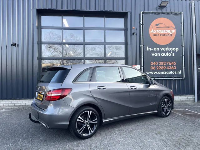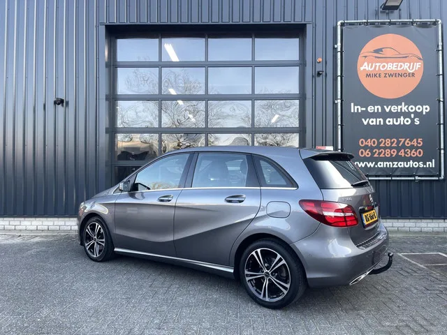 Mercedes B-klasse 180 Sport Ambition AUT. CARPLAY|TREKHAAK|CAMERA|LED VERLICHTING|STOELVERWARMING|CRUISE CONTROL. Kenteken: RG-166-K; Merk: Mercedes; Model: B-klasse; APK tot: 06-06-2026; Tellerstand: 140413 KM; Carrosserievorm: MPV; Aantal deuren: 5; Brandstofsoort: Benzine; Bouwjaar: 2016; Transmissie: Automaat; Kleur: grijs; Bekleding: Leder/Stof; Motorinhoud: 1595 cc; Aantal cilinders: 4; Motorcode: 270910; Vermogen: 90 kW / 123pk; Ledig gewicht: 1325 kg; Max. trekgewicht: 1200 kg; Aantal zitplaatsen: 5; Verbruik: 5.6 l/100 km; BTW/Marge: Marge, de BTW is niet aftrekbaar; Aantal sleutels: 2; Onderhoudshistorie aanwezig: Ja; Motorrijtuigenbelasting: € 199 - 217 per kwartaal; Emissieklasse: Euro 6. Comfort. Boordcomputer; Cruise control; Regensensor. Exterieur. Achterruitwisser; Buitenspiegels elektrisch verstel- en verwarmbaar; Centrale vergrendeling met afstandsbediening; Dimlichten automatisch; LED achterlichten; LED dagrijverlichting; LED koplampen; Parkeer assistent...