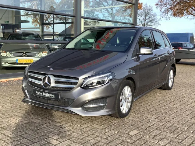 Mercedes B-klasse 180 navigatie, stoelverwarming, Kenteken: JLN-32-J; Merk: Mercedes; Model: B-klasse; APK tot: 14-11-2026; Tellerstand: 131207 KM; Carrosserievorm: MPV; Aantal deuren: 5; Brandstofsoort: Benzine; Bouwjaar: 2015; Transmissie: Handgeschakeld; Kleur: grijs; Motorinhoud: 1595 cc; Aantal cilinders: 4; Motorcode: 270910; Vermogen: 90 kW / 123pk; Ledig gewicht: 1295 kg; Max. trekgewicht: 1200 kg; Aantal zitplaatsen: 5; Verbruik: 5.6 l/100 km; BTW/Marge: Marge, de BTW is niet aftrekbaar; Aantal sleutels: 2; Onderhoudshistorie aanwezig: Ja; Motorrijtuigenbelasting: € 192 - 211 per kwartaal; Emissieklasse: Euro 6. Comfort. Boordcomputer. Exterieur. Achterruitwisser; Buitenspiegels elektrisch verstel- en verwarmbaar; Centrale vergrendeling met afstandsbediening; Dimlichten automatisch; LED achterlichten; LED dagrijverlichting; Metaalkleur; Parkeersensor voor en achter; Warmtewerend glas. Infotainment. Audio installatie; Audio-navigatie full map; Multimedia-voorbereiding...