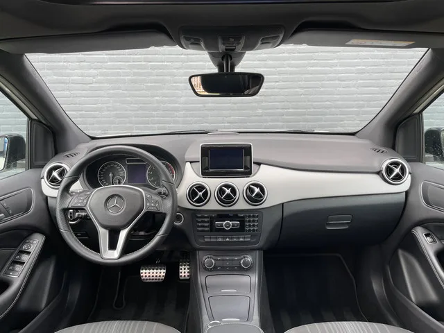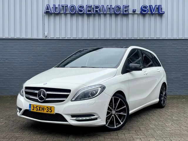 Een strak uitgevoerde Mercedes-Benz B-Klasse uit 2014 met benzinemotor en automatische transmissie. Deze B-Klasse is allesbehalve standaard dankzij het Night Pakket, Panoramadak, Achteruitrijcamera, Cruise controle, Bi-xenon koplampen, Trekhaak uitklapbaar en Apple car play etc etc. Afkomstig van 1e eigenaar. • Standaard Afleverpakket (inbegrepen): - Geldige APK. - Tenaamstelling van het voertuig. - Technisch inspectie. - Vloeistoffen controle en bijvullen. Dit afleverpakket bevat: BOVAG 40-Puntencheck. • Basis Afleverpakket (€ 1150-, incl. btw meerprijs): - Minimaal 1 jaar geldige APK. - Tenaamstelling van het voertuig. - 6 maanden / 7500 KM vrij van onderhoud. - Complete reinigingsbeurt binnen en buiten. - Technische inspectie. - Vloeistoffen controle en bijvullen. - Vervangend vervoer tegen gereduceerd tarief tijdens garantie werkzaamheden. - € 25,- brandstof of volle accu (elektrische/hybride voertuigen). Dit afleverpakket bevat (in plaats van afleverpakket Standaard...