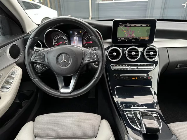 nette perfect onderhouden Mercedes C180 Estate Automaat boekjes en Car-Pass NAP aanwezig ! met Navigatie en achteruitrijcamera Cruise control Airco/Clima/gescheiden radio/dab/bluetooth Leder multistuur incl. schakelflippers Lane-assist voor en achter middenarmsteun/Leder sportstoelen met stoelverwarming El.bedienbare voorstoelen voor en achter El.ramen El.bedienbare en El.inklapbare en verwarmde buitenspiegels Centr.deurvergrendeling met afst.bediening Licht en regensensor Privacyglass Led dagrijverlichting Led koplampen voor en achter PDC dakrails/zwart dakspoiler in carrosseriekleur 17 inch LM velgen Trekhaak prijs is incl.BPM en afl.beurt met nieuwe APK !! voor meer informatie 0628588387. 115 kW; 4 cilinders; 1.595cc; Gewicht: 1.400kg; Max. trekgewicht: 1.800kg; 5 zitplaatsen; 6 l/100km; 7,6 l/100km; 5,1 l/100km; 135 g/km CO₂; 3 maanden garantie; Wegenbelasting: € 226-€ 247p/kwrt; vanaf € 311 p/m (informeer naar de mogelijkheden en voorwaarden); N-967-LT