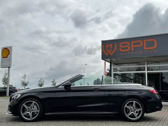 Mercedes C-klasse Cabrio 250 Premium Plus|AMG|LED|211PK. Kenteken: J-464-VD; Merk: Mercedes; Model: C-klasse Cabrio; Tellerstand: 115181 KM; Carrosserievorm: Cabrio; Aantal deuren: 2; Brandstofsoort: Benzine; Bouwjaar: 2017; Transmissie: Automaat; Kleur: zwart Metallic; Bekleding: Leder/Alcantara; Kleur interieur: zwart; Motorinhoud: 1991 cc; Aantal cilinders: 4; Motorcode: 274920; Vermogen: 155 kW / 211pk; Ledig gewicht: 1565 kg; Max. trekgewicht: 1800 kg; Aantal zitplaatsen: 4; Verbruik: 6.4 l/100 km; BTW/Marge: Marge, de BTW is niet aftrekbaar; Aantal sleutels: 2; Onderhoudshistorie aanwezig: Ja; Motorrijtuigenbelasting: € 267 - 292 per kwartaal; Emissieklasse: Euro 6. Pakket: AMG Line Exterieur. AMG-styling; Sportonderstel; Variabele stuuroverbrenging. Comfort. Cruise control; Regensensor. Exterieur. AMG-styling; Aluminium delen exterieur; Buitenspiegel(s) automatisch dimmend; Buitenspiegels elektrisch inklapbaar; Buitenspiegels elektrisch verstel- en verwarmbaar; Buitenspiegels...