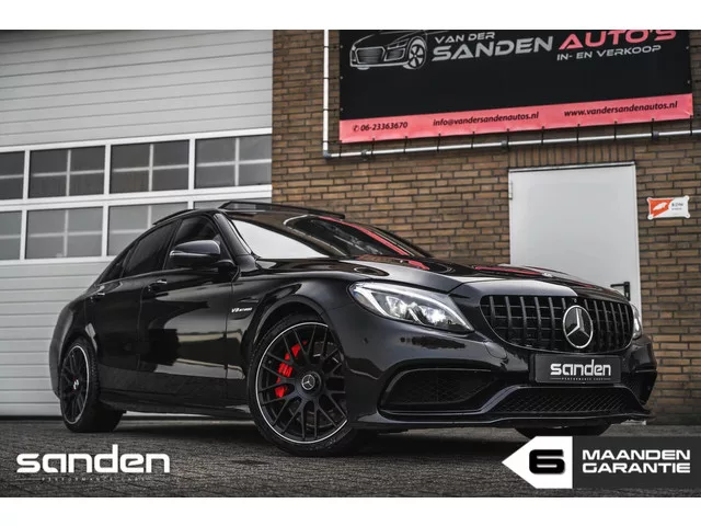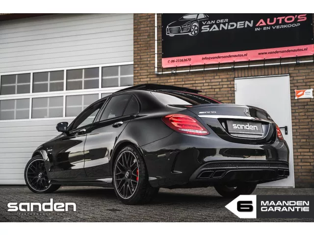 Prachtige volle Mercedes C63s|Panorama|Head-Up|360 camera|Elek.stoelen+Memory|AdaptiveCruise|Burmester|Perf.uitlaat|Stoelverw.|LED. Mercedes C-klasse AMG C63s 511pk|Pano|HUD|360cam|Memory|ACC. Merk: Mercedes; Model: C-klasse; Tellerstand: 83650 KM; Carrosserievorm: Sedan; Aantal deuren: 4; Brandstofsoort: Benzine; Bouwjaar: 2018; Transmissie: Automaat; Kleur: zwart Metallic; Bekleding: Leder; Kleur interieur: zwart; Interieurnaam: Zwart/wit leder; Motorinhoud: 3982 cc; Aantal cilinders: 8; Vermogen: 375 kW / 511pk; Ledig gewicht: 1655 kg; Aantal zitplaatsen: 5; Verbruik: 10.7 l/100 km; BTW/Marge: Marge, de BTW is niet aftrekbaar; Aantal sleutels: 2; Onderhoudshistorie aanwezig: Ja; Velgmaat: 19 inch. Pakket: Rijassistentiepakket. Bots herkenning en activatie; Cruise control adaptief met Stop&Go en stuurhulp; Dodehoekdetectie met correctie; Kruisend verkeer detectie; Rijstrooksensor met correctie; Uitwijk assistent. Comfort. Cruise control; Regensensor. Exterieur. 19” AMG velgen...