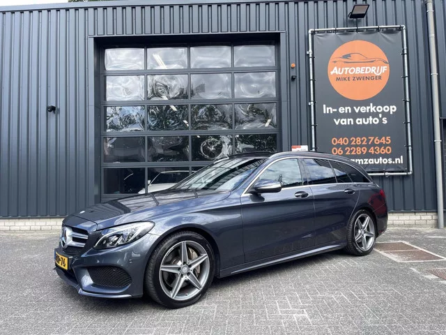 Mercedes C-klasse Estate 250 AMG|PANORAMADAK|LUCHTVERING|TREKHAAK|CAMERA|LED KOPLAMPEN|ORIGINEEL NL. Kenteken: 1-ZTP-76; Merk: Mercedes; Model: C-klasse Estate; APK tot: 27-03-2026; Tellerstand: 162994 KM; Carrosserievorm: Station; Aantal deuren: 5; Brandstofsoort: Benzine; Bouwjaar: 2015; Transmissie: Automaat; Kleur: grijs; Bekleding: Leder; Motorinhoud: 1991 cc; Aantal cilinders: 4; Motorcode: 274920; Vermogen: 155 kW / 211pk; Ledig gewicht: 1440 kg; Max. trekgewicht: 1800 kg; Aantal zitplaatsen: 5; Verbruik: 5.8 l/100 km; BTW/Marge: Marge, de BTW is niet aftrekbaar; Lengte: 471 cm; Onderhoudshistorie aanwezig: Ja; Motorrijtuigenbelasting: € 226 - 247 per kwartaal; Emissieklasse: Euro 6. Pakket: AMG Line Exterieur. AMG-styling; Sportonderstel. Pakket: Parkeer pakket. Achteruitrijcamera. Comfort. Cruise control; Regensensor. Exterieur. AMG-styling; Achterruitwisser; Buitenspiegels elektrisch inklapbaar; Buitenspiegels elektrisch verstel- en verwarmbaar; Buitenspiegels elektrisch...