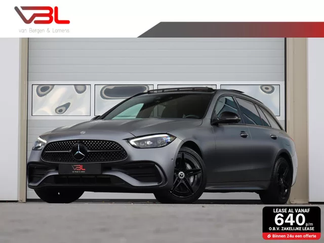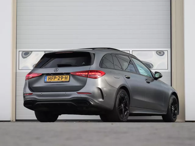 Panoramadak | LED matrix | Head-up | Memory | Lederen bekleding | Night pakket | 360° Camera | wegklapbare trekhaak | Apple carplay. Mercedes C-klasse Estate 300 e AMG Line | Full options | SOH 93%. Kenteken: HFP-29-H; Merk: Mercedes; Model: C-klasse Estate; APK tot: 27-01-2026; Tellerstand: 117658 KM; Carrosserievorm: Station; Aantal deuren: 5; Brandstofsoort: Hybride (Elektrisch/Benzine); Accucapaciteit: 25 kWh; Bouwjaar: 2022; Transmissie: Automaat 9; Kleur: grijs Metallic; Kleurnaam: Designo Selenitgrau Magno 297; Bekleding: Leder; Kleur interieur: zwart; Motorinhoud: 1999 cc; Aantal cilinders: 4; Motorcode: 254920; Vermogen: 230 kW / 313pk; Ledig gewicht: 2020 kg; Max. massa voertuig: 2655 kg; Max. trekgewicht: 1800 kg; Aantal zitplaatsen: 5; Verbruik: 0.6 l/100 km; BTW/Marge: Marge, de BTW is niet aftrekbaar; Lengte: 479 cm; Breedte: 190 cm; Hoogte: 145 cm; Aantal sleutels: 2; Onderhoudshistorie aanwezig: Dealer onderhouden; Motorrijtuigenbelasting: € 279 - 309 per kwartaal; ...