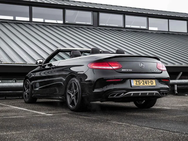Mercedes C-klasse Cabrio C43 AMG 367PK Speedshift 4MATIC Burmester Airscarf Sportuitlaat Memory LED. Kenteken: ZS-241-D; Merk: Mercedes; Model: C-klasse Cabrio; APK tot: 18-02-2027; Tellerstand: 92113 KM; Carrosserievorm: Cabrio; Aantal deuren: 2; Brandstofsoort: Benzine; Bouwjaar: 2017; Transmissie: Automaat; Kleur: zwart; Bekleding: Leder/Alcantara; Kleur interieur: zwart; Motorinhoud: 2996 cc; Aantal cilinders: 6; Motorcode: 276823; Vermogen: 270 kW / 368pk; Ledig gewicht: 1770 kg; Max. trekgewicht: 1000 kg; Aantal zitplaatsen: 4; Verbruik: 8.4 l/100 km; BTW/Marge: Marge, de BTW is niet aftrekbaar; Aantal sleutels: 2; Onderhoudshistorie aanwezig: Ja; Motorrijtuigenbelasting: € 333 - 365 per kwartaal; Emissieklasse: Euro 6. Pakket: Cabrio pakket. Elektrisch windscherm; Nekverwarming; Windscherm. Pakket: Spiegel pakket. Binnenspiegel automatisch dimmend; Buitenspiegel(s) automatisch dimmend; Buitenspiegels elektrisch inklapbaar; Buitenspiegels met verlichting. Pakket: Parkeer...