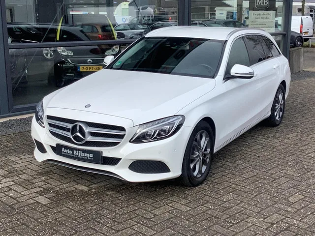 Mercedes C-klasse Estate 180 Prestige, head up display, camera, led, navi, Kenteken: JXV-67-B; Merk: Mercedes; Model: C-klasse Estate; Tellerstand: 106892 KM; Carrosserievorm: Station; Aantal deuren: 5; Brandstofsoort: Benzine; Bouwjaar: 2015; Transmissie: Automaat; Kleur: wit; Motorinhoud: 1595 cc; Aantal cilinders: 4; Motorcode: 274910; Vermogen: 115 kW / 157pk; Ledig gewicht: 1400 kg; Max. trekgewicht: 1800 kg; Aantal zitplaatsen: 5; Verbruik: 5.6 l/100 km; BTW/Marge: Marge, de BTW is niet aftrekbaar; Motorrijtuigenbelasting: € 226 - 247 per kwartaal; Emissieklasse: Euro 6. Pakket: Parkeer pakket. Achteruitrijcamera; Parkeer assistent; Parkeersensor voor en achter. Comfort. Cruise control; Regensensor. Exterieur. Achterruitwisser; Buitenspiegels elektrisch inklapbaar; Buitenspiegels elektrisch verstel- en verwarmbaar; Buitenspiegels elektrisch verstelbaar; Buitenspiegels verwarmbaar; Centrale vergrendeling met afstandsbediening; Dakrails; Dimlichten automatisch; Elektrisch...
